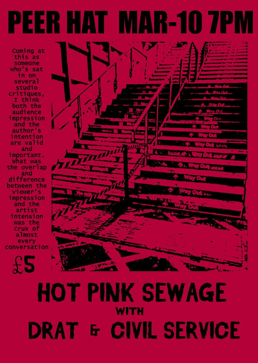 | Mar 10 | Peer Hat | Manchester, UK | Hot Pink Sewage -&- Drat |