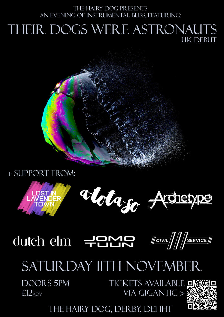 | Nov 11 | The Hairy Dog | Derby | Their Dogs Were Astronauts - Lost in Lavender Town - a-tota-so - Archetype - Dutch Elm - Jomo Tuun |