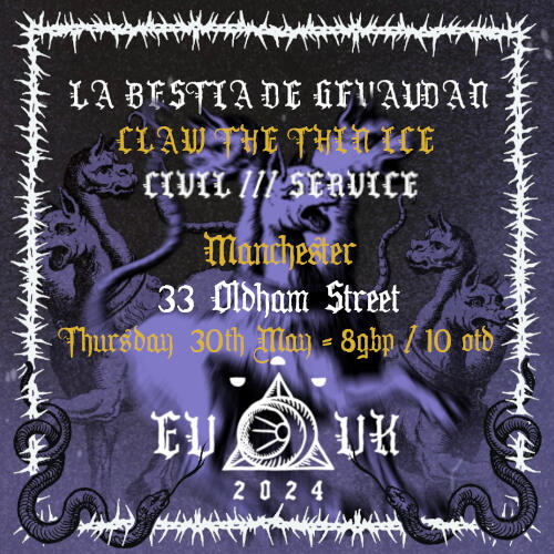 | May 30 | 33 Oldham Street | Manchester | La Bestia De Gevaudan -&- Claw The Thin Ice |