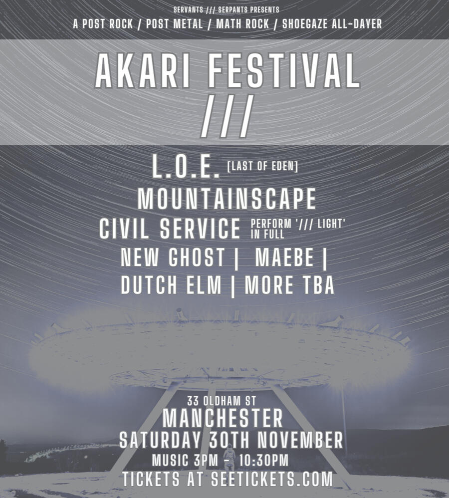 | November 30 | 33 Oldham Street | Manchester | AKARI Festival: L.O.E., Mountainscape, New Ghost, Maebe + MORE TBA |