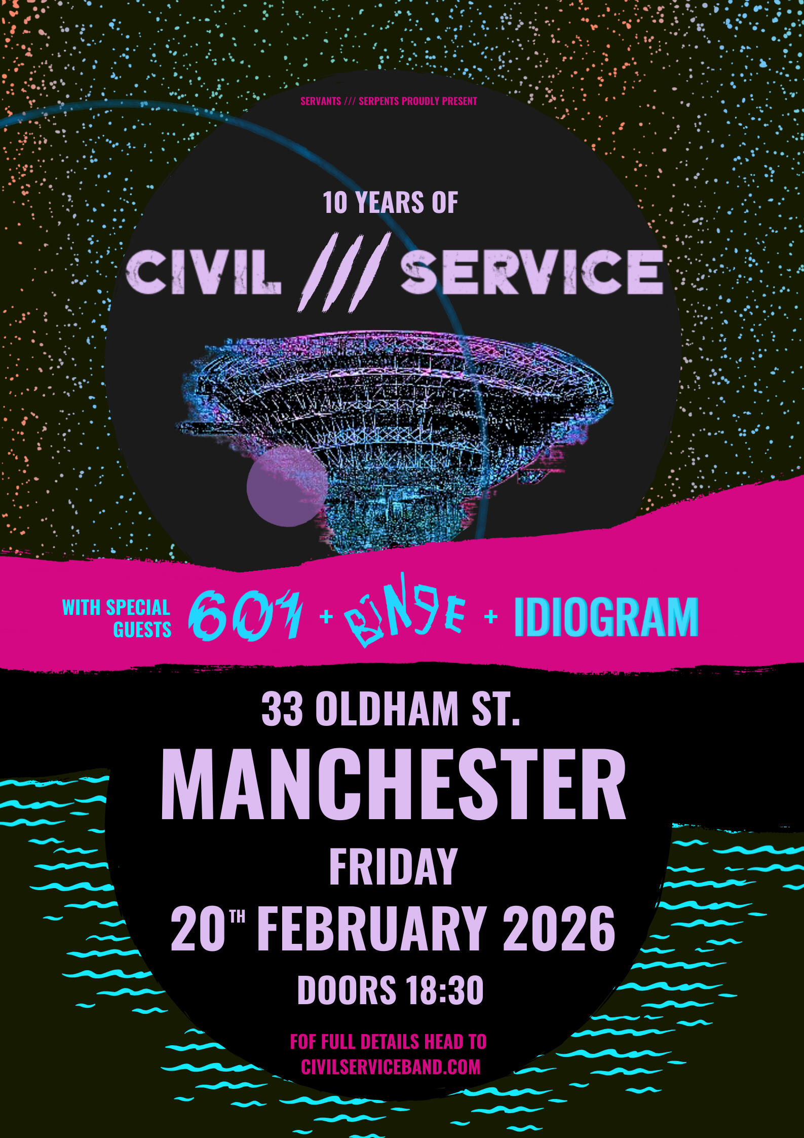 | February 20 | 33 Oldham Street | Manchester | CIVIL SERVICE HEADLINE SHOW - with 601 Live, Binge -&-Idiogram |