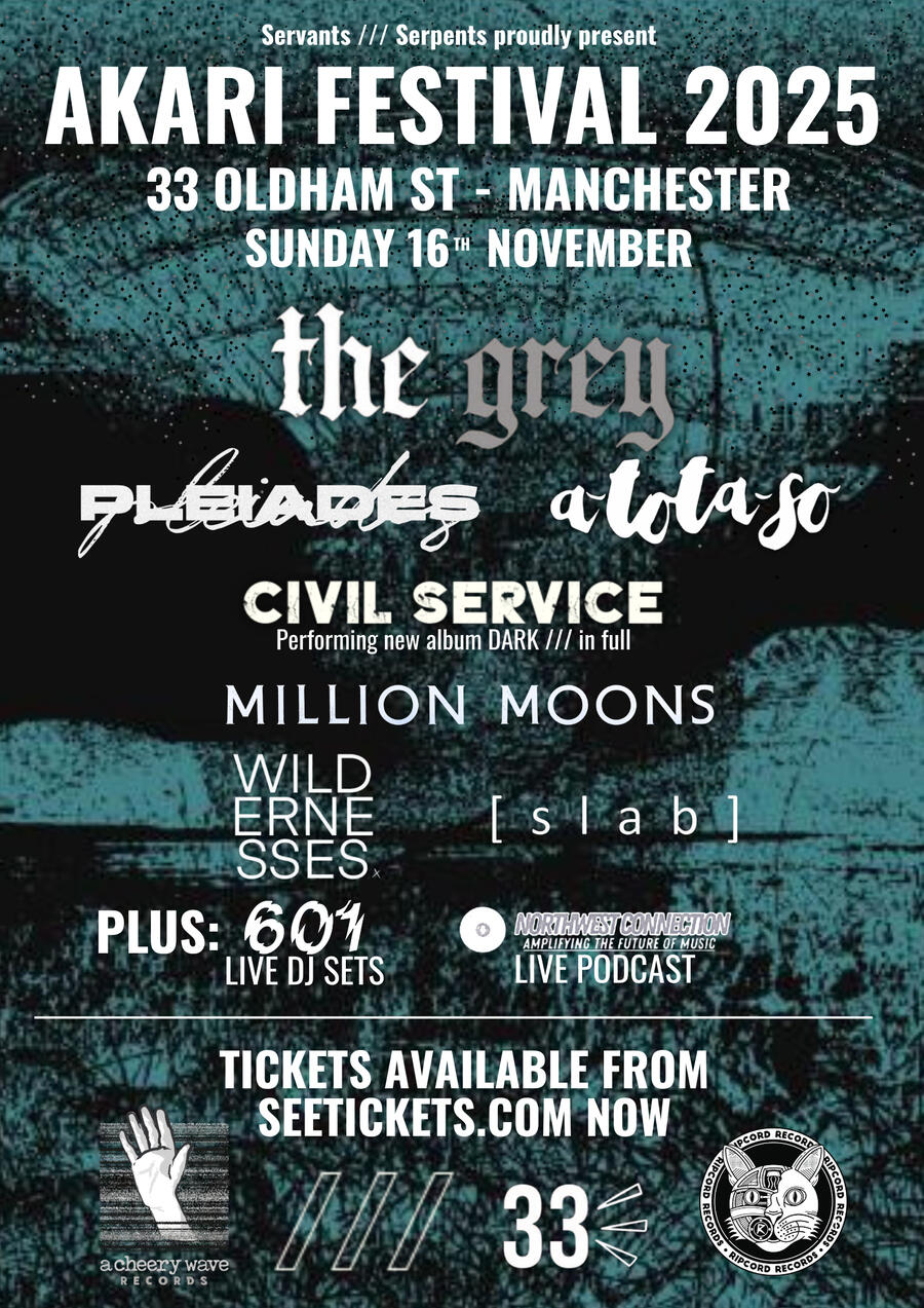 | November 16 | 33 Oldham Street | Manchester | AKARI II - The Grey, Civil Service, a-tota-so, Pleiades, Million Moons, Wildernesses, [SLAB], 601 DJs and NWC Podcast |