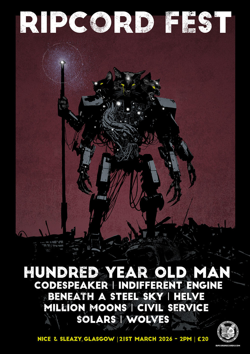 | March 21 | Nice & Sleazy's | Glasgow | RIPCORD FEST with Hundred Year Old Man, Codespeaker, Indifferent Engine, Beneath A Steel Sky, Million Moons, Solars, Helve, Wolves |