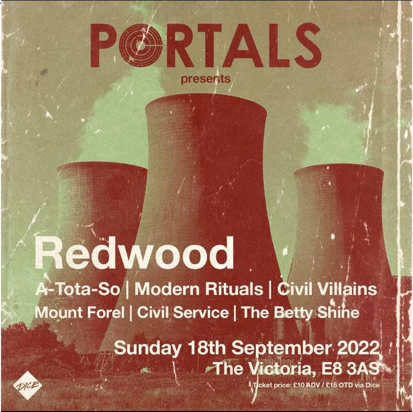 | Sept 18 | The Victoria, Dalston | London, UK | PORTALS Presents, with Redwood / A-Tota-So / Modern Rituals / Civil Villains / Mount Forel / The Betty Shine |