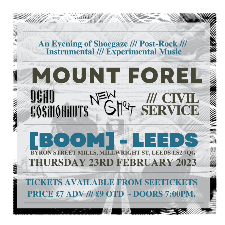 | Feb 23 | Boom | Leeds, UK | Mount Forel -&- Dead Cosmonauts -&- New Ghost |