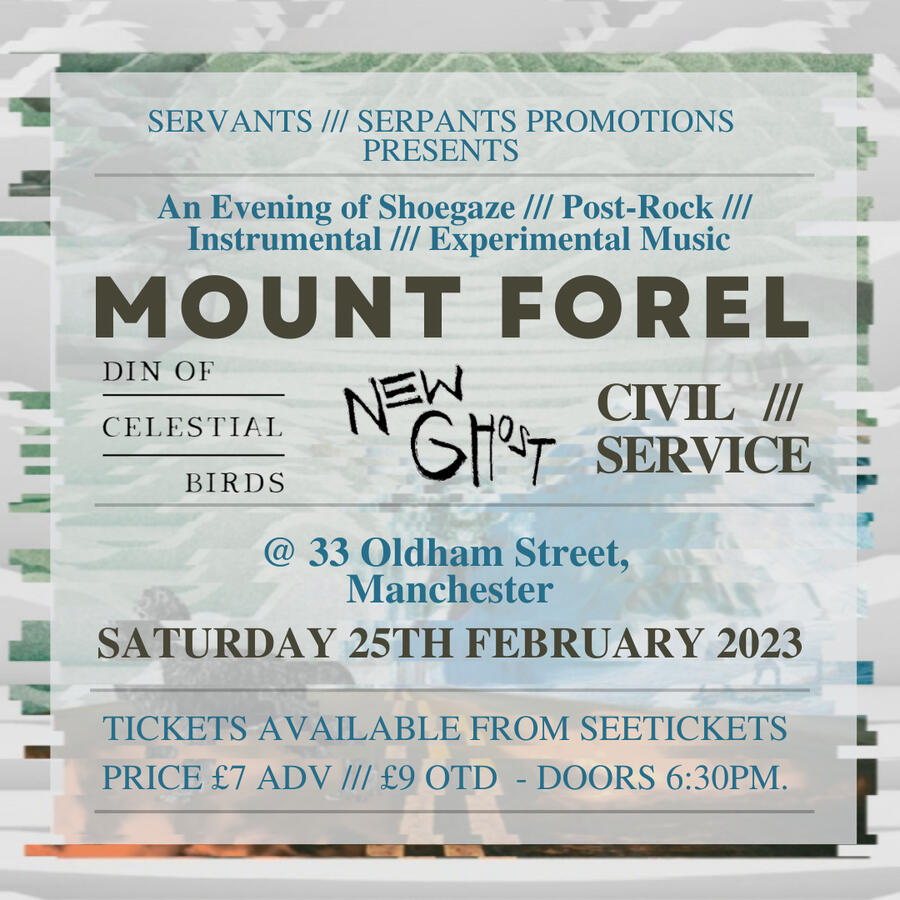 | Feb 25 | 33 Oldham Street | Manchester, UK | Mount Forel -&- Din of Celestial Birds -&- New Ghost |
