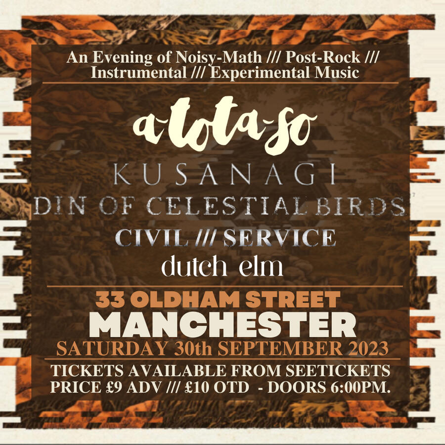 | Sept 30 | 33 Oldham Street | Manchester, UK | a-tota-so - Kusanagi - Din of Celestial Birds - Dutch Elm |