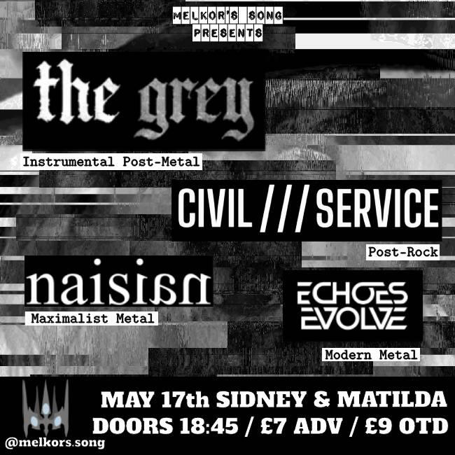 | May 17 | Sidney & Matilda | Sheffield | The Grey - Naisian - Echoes Evolve |