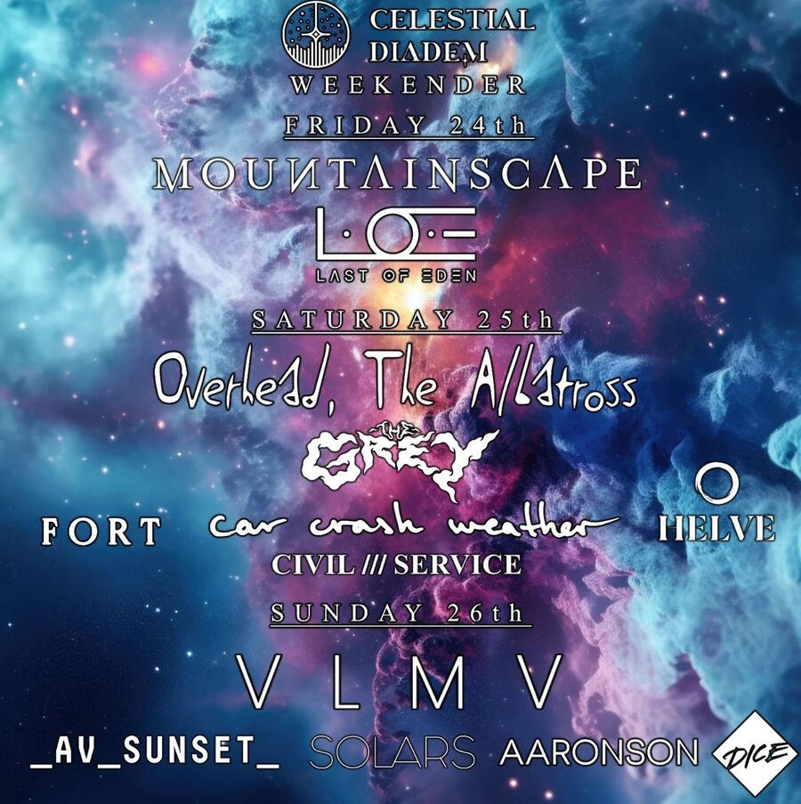 | January 24-26 | 229 | London | Celestial Diadem Weekender - Mountainscape, LOE, Overhead the Albatross, The Grey, FORT, Car Crash Weather, Helve, VLMV, AV_Sunset, Solars, Aaronson |