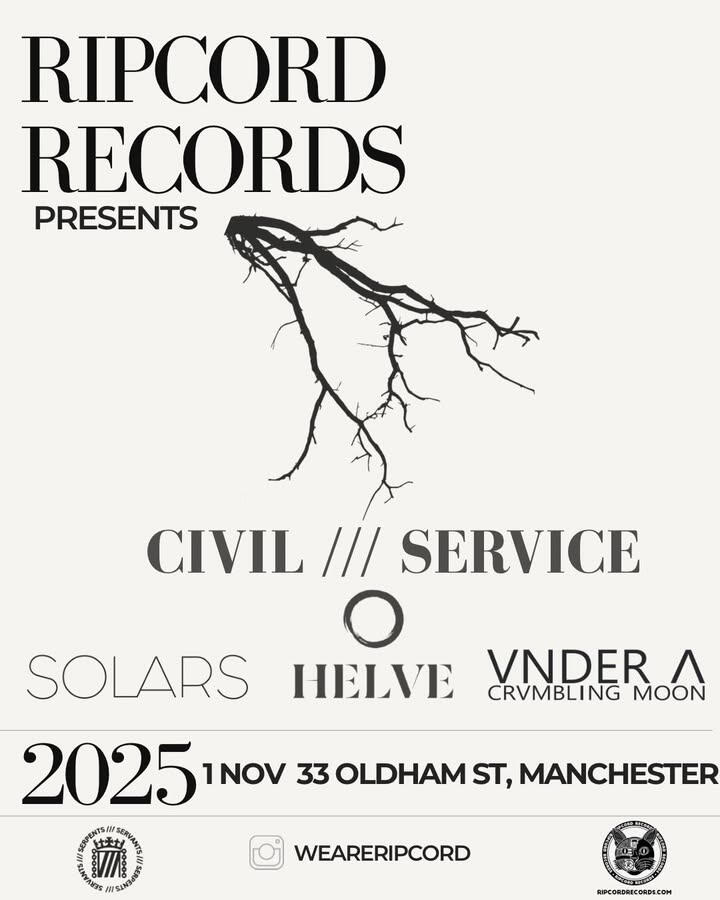 | November 1 | 33 Oldham Street | Manchester | RIPCORD RECORDS TOUR II - Headline Show with Helve, Solars -&- Vnder A Crvmbling Moon |