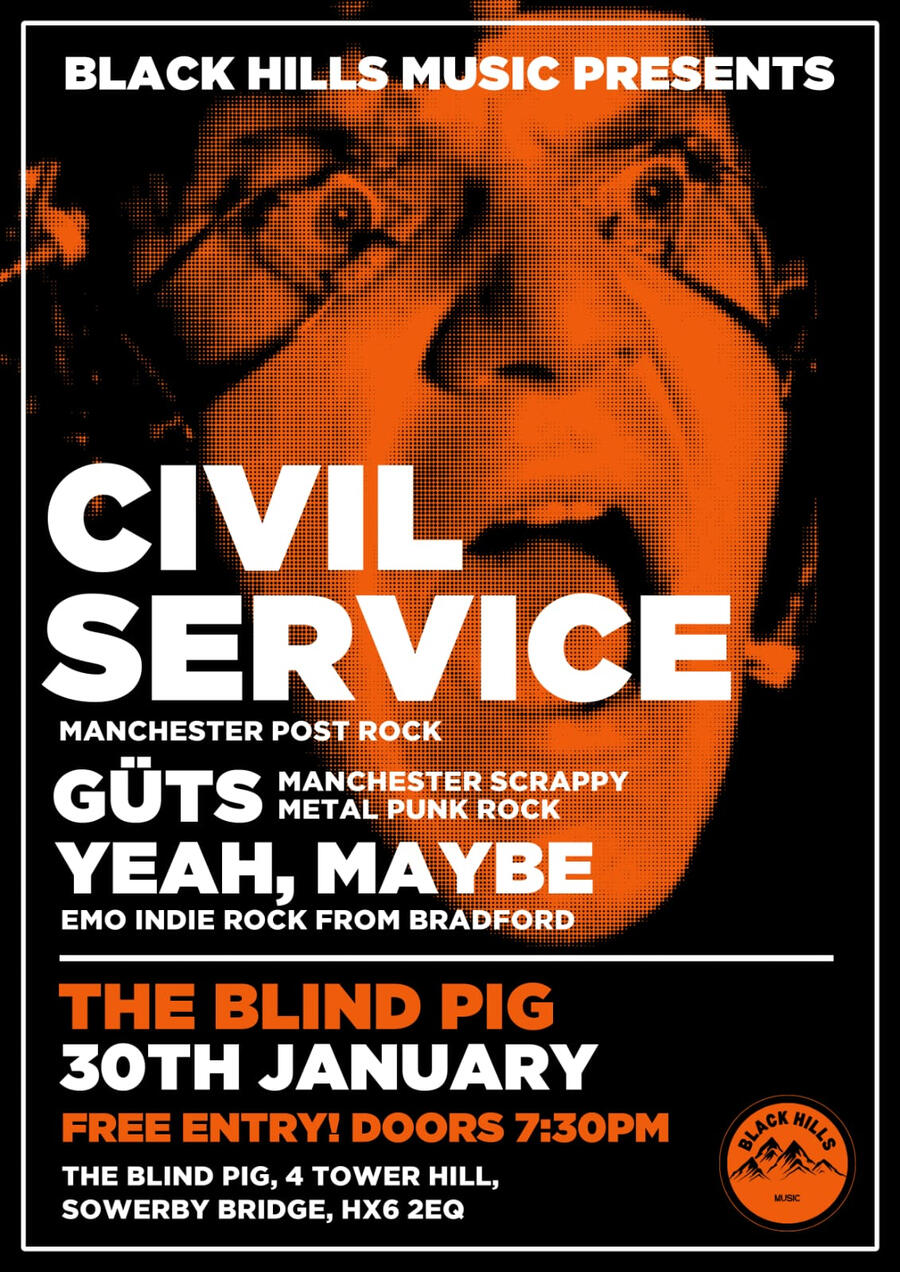 | January 30 | The Blind Pig | Sowerby Bridge | CIVIL SERVICE HEADLINE SHOW - with Guts -&- Yeah, Maybe |
